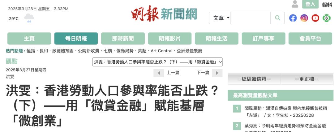 原标题:《【深度分析】洪雯教授:香港劳动人口参与率能否止跌?(下)——用“微贷金融”赋能基层“微创业”》
