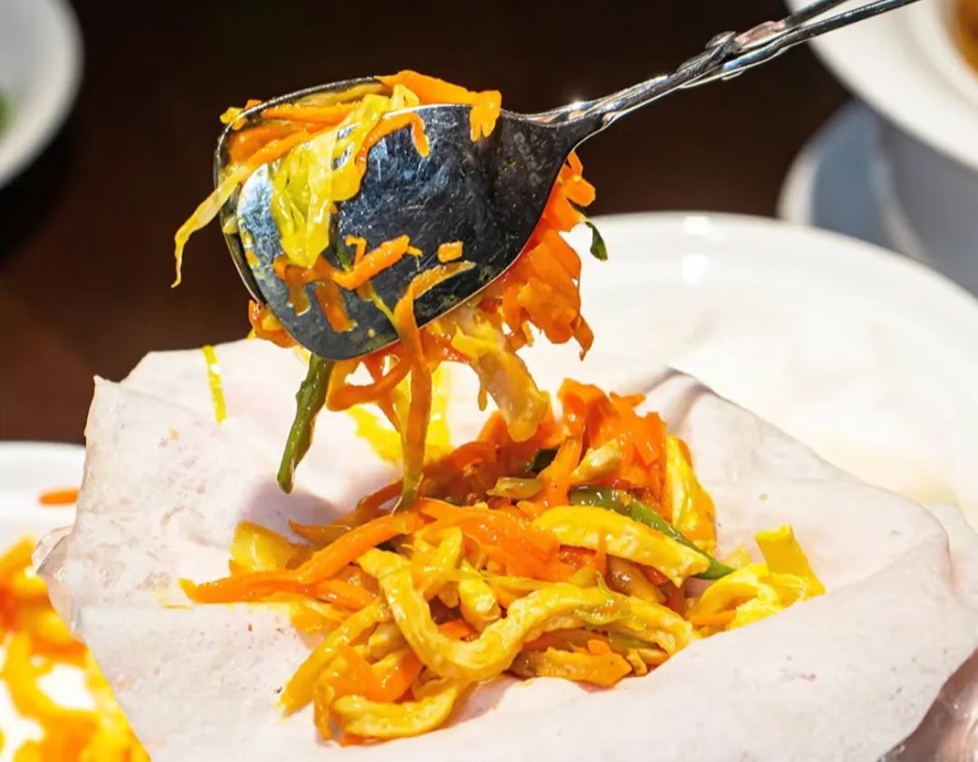 当季食材切作细丝裹进薄如蝉翼的春卷皮