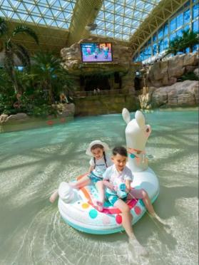 波利尼西亚海岛风强势来袭!从棕榈叶屋顶到原木图腾柱,室内水乐园全年30℃恒温,摆脱晴雨束缚,仿佛穿越到夏威夷,从极限挑战到治愈系漂浮,全家老小都能找到快乐星球~