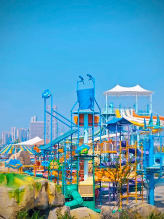 室外水乐园建筑面积3万平方米,可同时满足3300人水上游玩。含龙卷风暴(大喇叭组合滑道+大滑板)、室外竞速滑道、垂直极限滑道、激流河、漂流河、大型儿童水寨、巨浪池等网红项目,在这里尽情感受肾上腺素飙升的快乐!