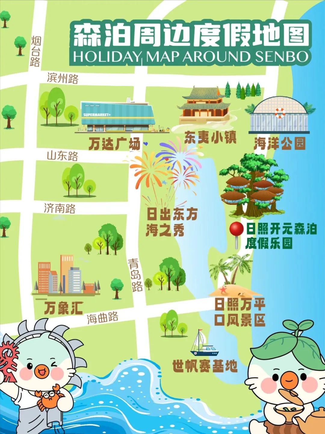 日照开元森泊度假乐园坐落于山东省日照市国家4A级景区——万平口风景区,离黄金海岸沙滩仅一路之隔。乐园拥有全年恒温30℃室内水乐园和网红项目室外水乐园,同时集泡泡主题儿童乐园、海岛集市广场、头号玩家、萌宠乐园、海洋主题餐厅、宴会中心于一体,320间集中酒店临海客房及122间主题特色木屋房型,提供全天候一站式滨海度假新体验。