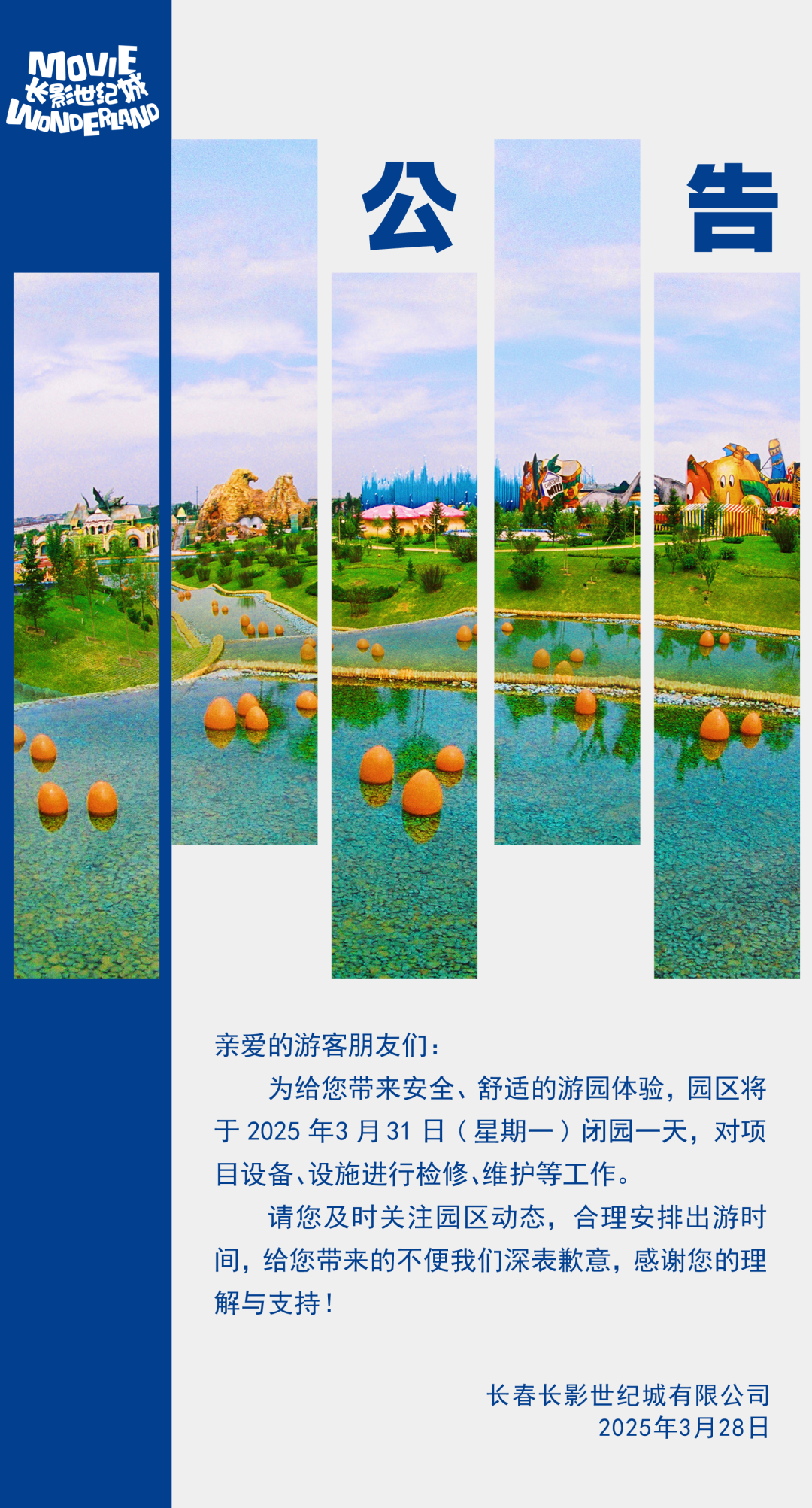 长影世纪城发布通知