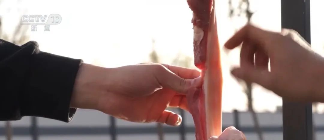 △图源:泰州消防消防员将一块五花肉绑在车顶上,在封闭道路上进行试验。一根风筝线被横拉在路面。随着车辆发动加速,“嗖”的一声,五花肉划过风筝线。就在这一瞬,原本平整的猪肉表面,出现一条几厘米深的割痕,触目惊心。