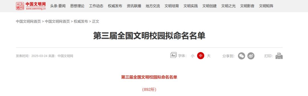 3月24日,中国文明网发布《第三届全国文明校园拟命名名单》,拟命名892所全国文明校园,我市昭通市实验中学、鲁甸县第四小学2所学校上榜!