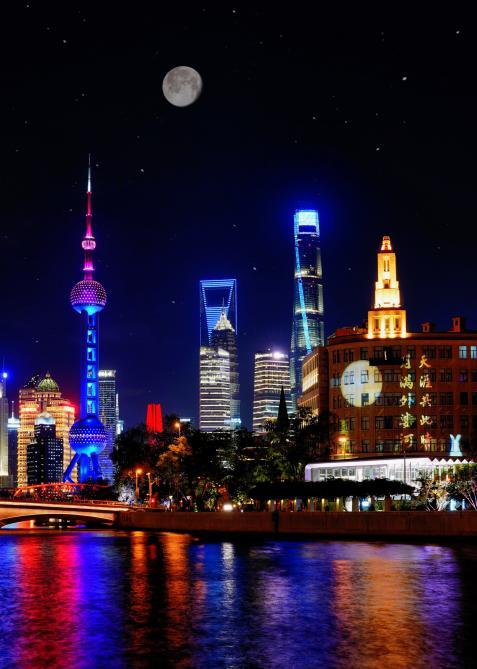 外滩楼影依清浪,古渡舟行伴绿泓。