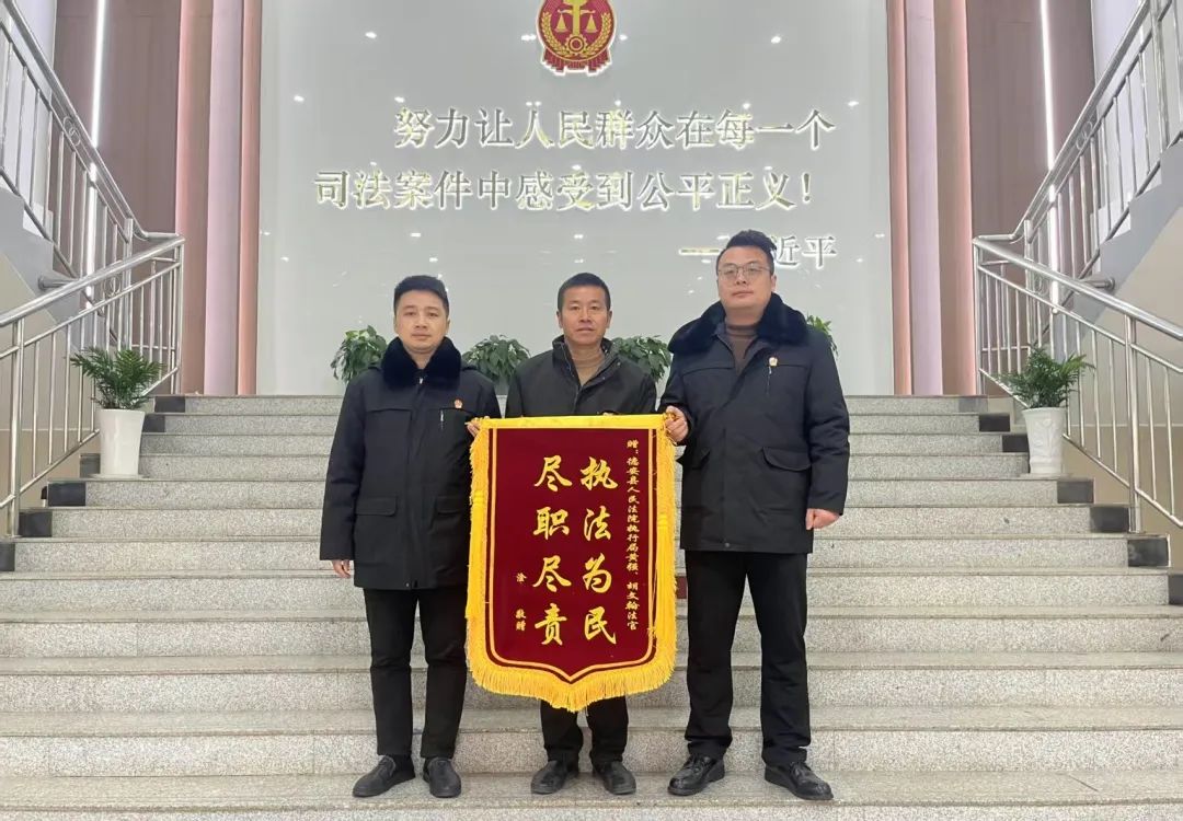 因申请执行人此前提到过一直等着这笔执行款给手下几十名农民工发放工资,故法院特意通过绿色通道为申请执行人淦某办理了发放手续。第二天,淦某在收到执行款后迅速发放给了工人们,并打来电话称“十分感谢法院,终于可以睡个安稳觉了” !没过几天,申请执行人又特意从永修赶到德安,为执行法官送来锦旗,对法官多次往返德安永修两地协调追回款项的辛苦付出表示感谢。