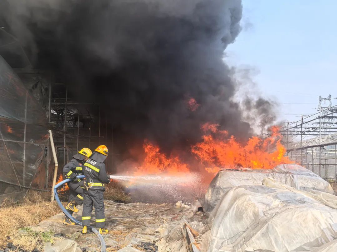 案例四2025年1月23日,吉安市吉安县敦厚镇一处塑料棚子着火,现场浓烟滚滚,覆盖在大棚的大棉被引燃。据大棚员工介绍,当地村民烧纸祭祖时,导致枯草被点燃,随后火势扩散致大棚。