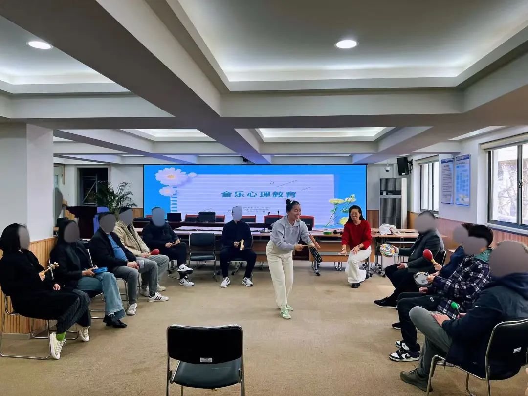 欢快节奏 唤醒身心随着课程推进,指导老师带领大家开展了“击打节奏,唤醒活力”、 “身体律动,自由表达”、“欢乐跳圈,协作共融”“歌声传情,展望新生”四个环节,借助音乐的力量,使参与者减轻了心理压力、调节了情绪状态,也增强了社交互动能力。