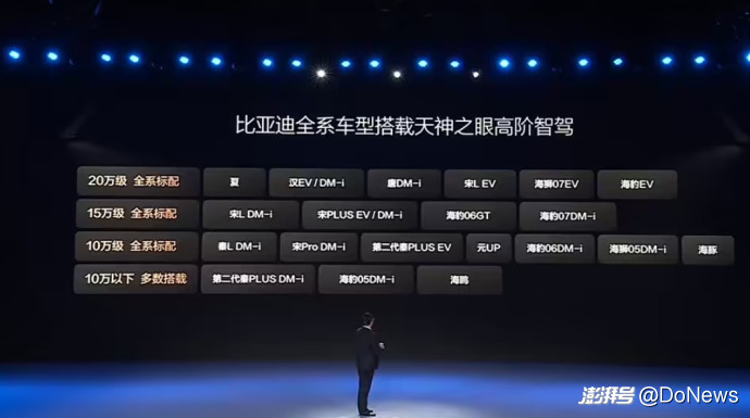 2025年2月,比亚迪放出“王炸”,将“天神之眼”智驾系统装备到旗下20余款车系上,并实现了“10万以下多数搭载,10万级全系标配”的创举。