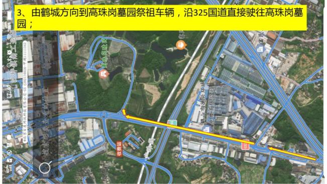 3、由鹤城方向到高珠岗墓园祭祖车辆,沿325国道直接驶往高珠岗墓园;