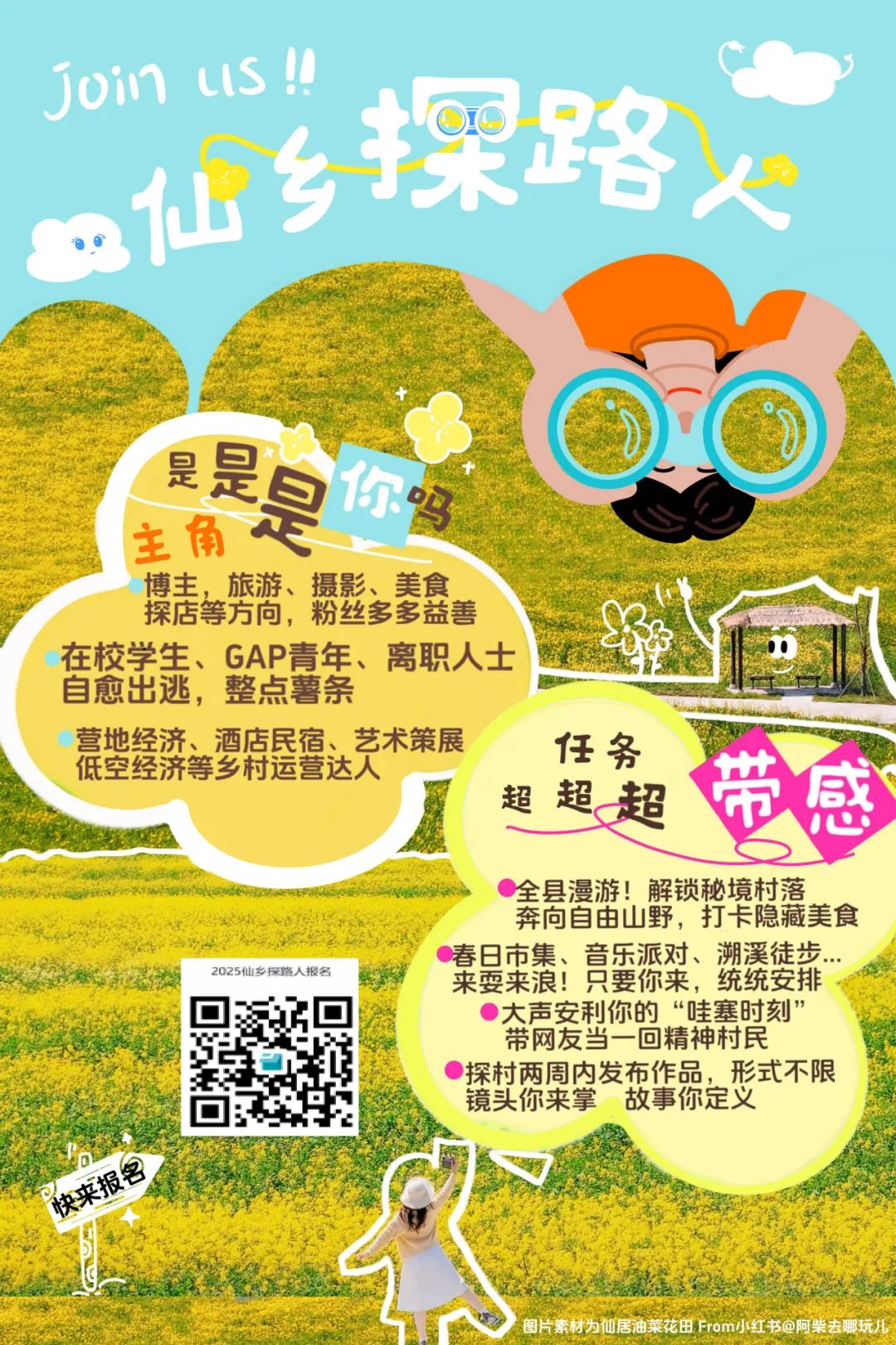 荣誉激励得到“仙乡探路人”官方资格认证和独特身份标识,拥有县域内乡村活动的优先参加权益。