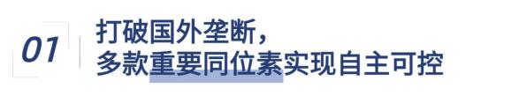 医用同位素作为放射性药物的原材料,对核医疗产业的高质量发展至关重要。中核集团依托重水堆、高通量堆及加速器等设施,加快推进医用同位素研发与生产,取得一系列明显成效。2024年,中核集团国内首条年产万居里级无载体镥[177Lu]生产线、年产能千条级锗镓[68Ge-68Ga]发生器生产线全面建成投产,标志着我国正式具备万居里级镥[177Lu]、镓[68Ga]新一代诊疗一体化医用同位素规模化、商业化生产供应能力,显著提升了我国对于前列腺癌、肺癌、胰腺癌、肾透明细胞癌、结直肠癌等高发癌症的治疗能力。首次开发铜[64Cu]自动分离纯化工艺和装置,实现规模化生产,成为国内唯一的铜[64Cu]核素供应商。全面掌握反应堆制备氯化钪[47Sc]溶液的关键技术,在国内实现首次应用,主要技术指标达到国际先进水平。秦山同位素基地完成产线安装,钴[60Co]放射源生产线交付产品200万居里,碳[14C]核素生产线试生产成功,实现碳[14C]供应的全面国产化。华北高科分子靶向诊疗药品生产基地取得甲级辐射安全许可证,为打造世界先进的放射性同位素药品生产基地奠定了坚实基础。面向未来,中核集团将加快推进同位素产能建设,推动溶液堆等在建项目尽快投产,形成稳定的全谱系医用同位素生产供应能力,全面扭转我国医用同位素受制于人的局面。