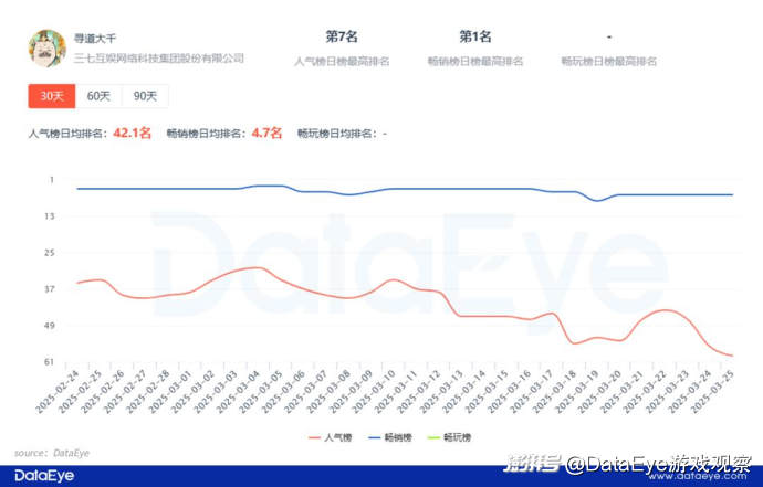 不过《寻道大千》多年以来所累积起庞大的用户群体,也能保障产品可以持续活跃在畅销榜之内,只是难以回到TOP3阵营。