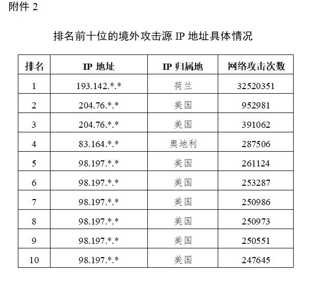黑龙江省内关键信息基础设施遭受境外攻击情况