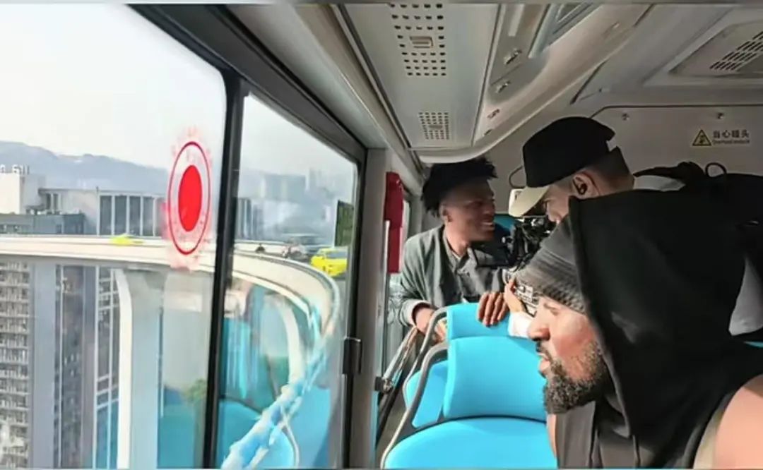 当来到李子坝站,体验重庆轨道交通列车穿楼,他兴奋得现场跳了起来!直呼:“等不及要看了!Oh my God(我的天)!列车穿过了大楼!”