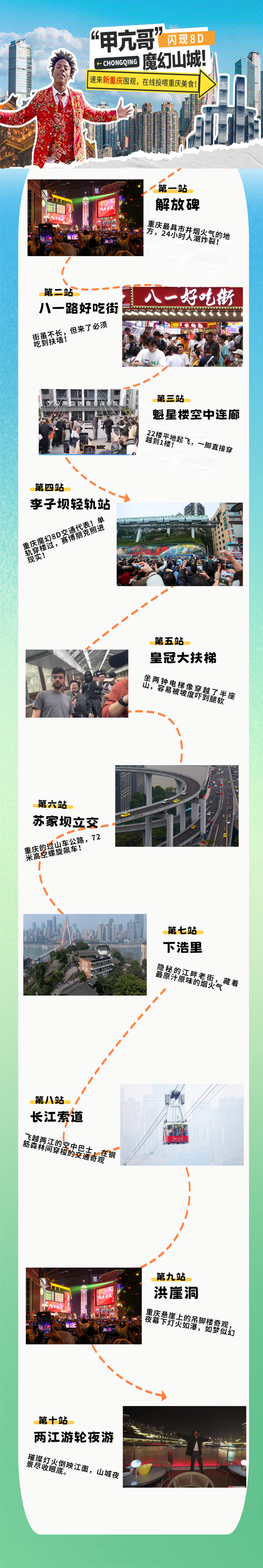 最后,附上“甲亢哥”重庆之行的不完全打卡点,快跟着他来解锁重庆吧!