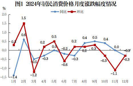 全年居民消费价格(CPI)比上年下跌0.1%,其中服务类价格下跌0.5%,消费品价格上涨0.2%。