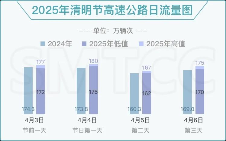 4月4日,清明假期第一天,高速公路将面临较大运行压力,更多高速路段将易拥堵,涉及G40沪陕高速长江隧道与长江隧桥段、G1503绕城高速五洲大道立交至高东入口、G15沈海高速、G15沈海高速嘉浏段、G50沪渝高速朱枫段、G60沪昆高速中春路段等。而在祭扫车流方向性特征的影响下,部分射线高速公路(如G2京沪、G40沪陕长江桥隧、G50沪渝、G60沪昆)及墓区周边匝道将出现较大范围缓行甚至较长时间拥堵。预测信息也显示,清明节当日,墓园道口车流将同比增长15%—20%。届时,通往嘉定、青浦及浦东等主要墓园的13个收费道口,出现高峰流量的时段较平时周末提前至少2小时。由于墓园停车场待入场车辆在到达高峰时段会出现排队溢出现象,届时积压车辆将影响墓园相关主要道路和高速公路道口(如G50青浦城区、朱枫公路、G1503嘉松北路和瓦洪公路、G2嘉松公路、G15宝安公路、S4海湾)通行,甚至造成部分高速公路主线方向的车流行驶缓慢。