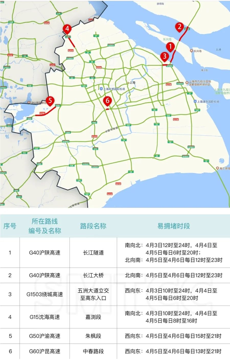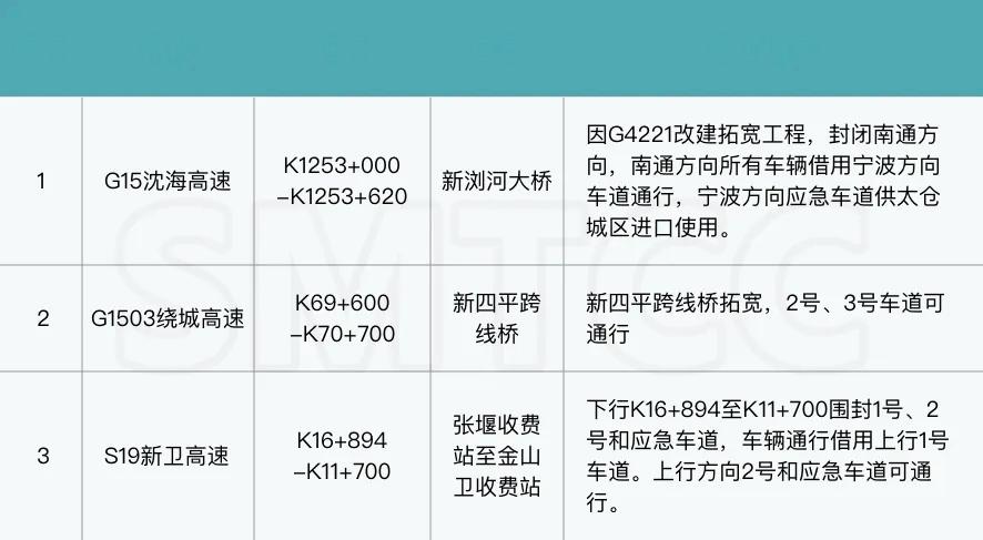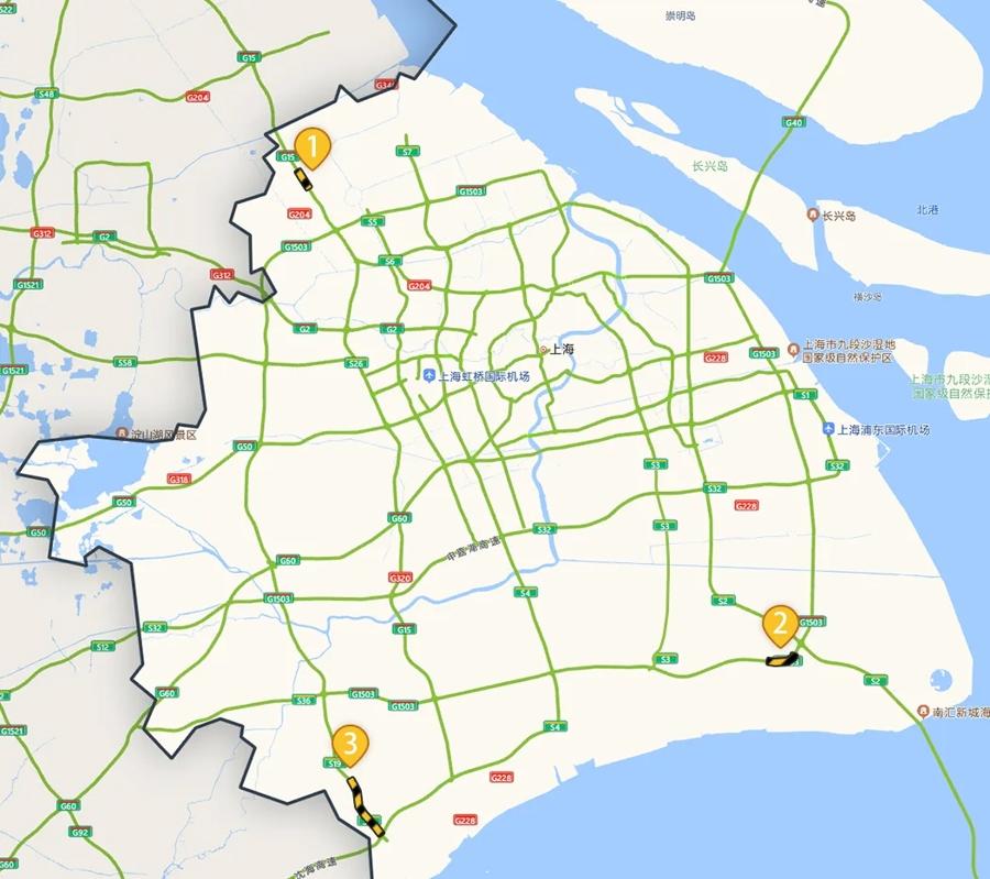 2025年清明节期间,上海高速公路日均车流量预计将达169万—174万辆次,同比上升1%—4% 来源:上海交通指挥中心这些高速路段施工