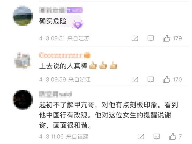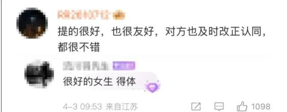 4月2日晚,该女生在自己的社交平台发文回应:提醒不文明行为,人人有责,希望大家都能有一些正面的输出,让世界更美好。