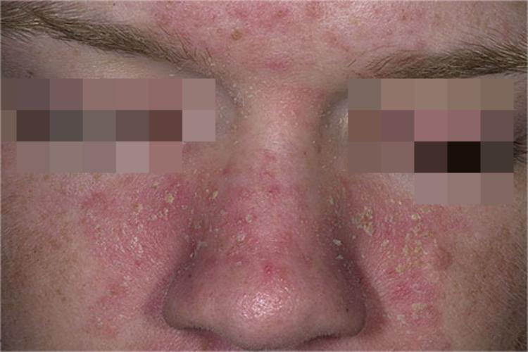 初期一般表现为毛囊周围炎症性丘疹,之后随病情发展可表现为界限比较清楚、略带黄色的暗红色斑片,其上覆盖油腻的鳞屑或痂皮,自觉轻度瘙痒。严重者毛囊口会出现毛囊炎,部分还可伴有脂溢性脱发。