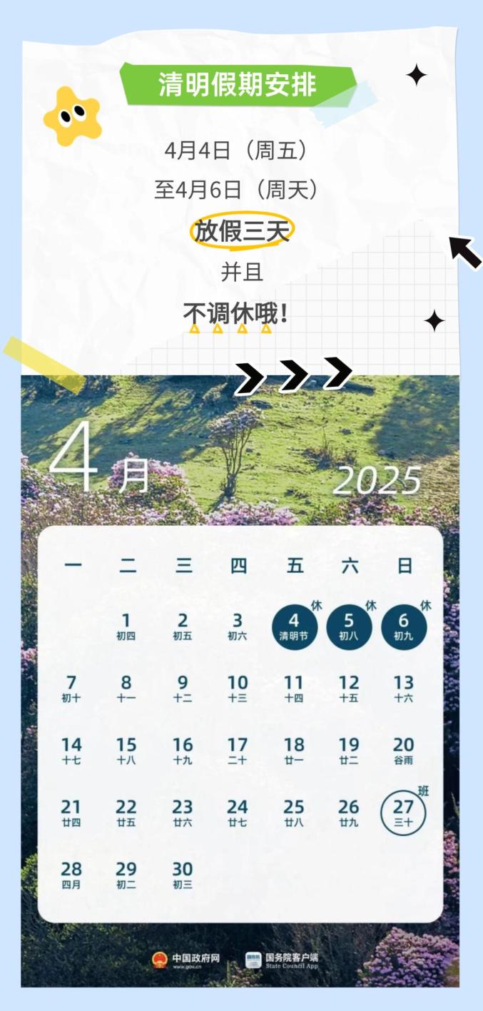 至5日(周一)放假调休
