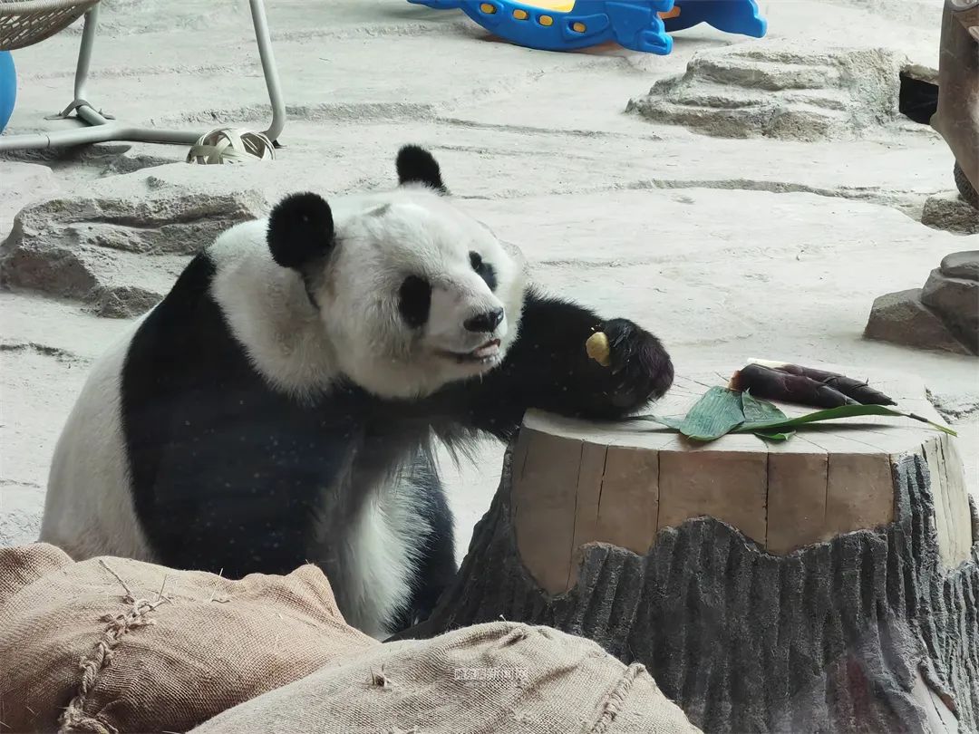 思嘉公主满足地吃着清明果,憨态可掬的样子让游客们忍俊不禁,连连称赞。而帅哥佑佑则显得格外专注。一上午的时间,牠都沉浸在吃竹子的乐趣中,似乎完全忘记了饲养员为牠精心准备的清明果。佑佑悠闲地坐在户外,津津有味地嚼着竹子,那份自在和惬意让游客们感受到大熊猫的独特魅力。