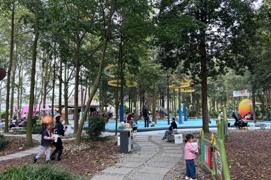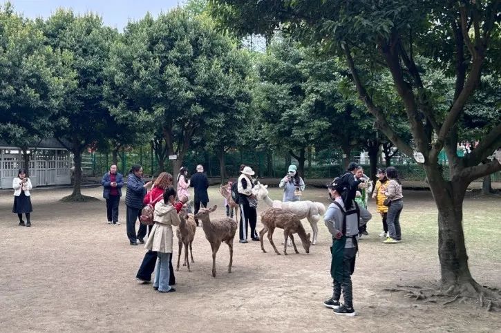 位于鲁家滩核心区域的鹿尔花园也是成都近郊亲子出游的热门“目的地”。上午10点,园区入口处已有不少家庭排队扫码入园。进入园区,可爱的梅花鹿与孩子们亲密互动,好不惬意。此外,鹿尔花园设置了30多项游乐设施,让孩子们尽情玩耍,露营休闲区也很受游客欢迎。