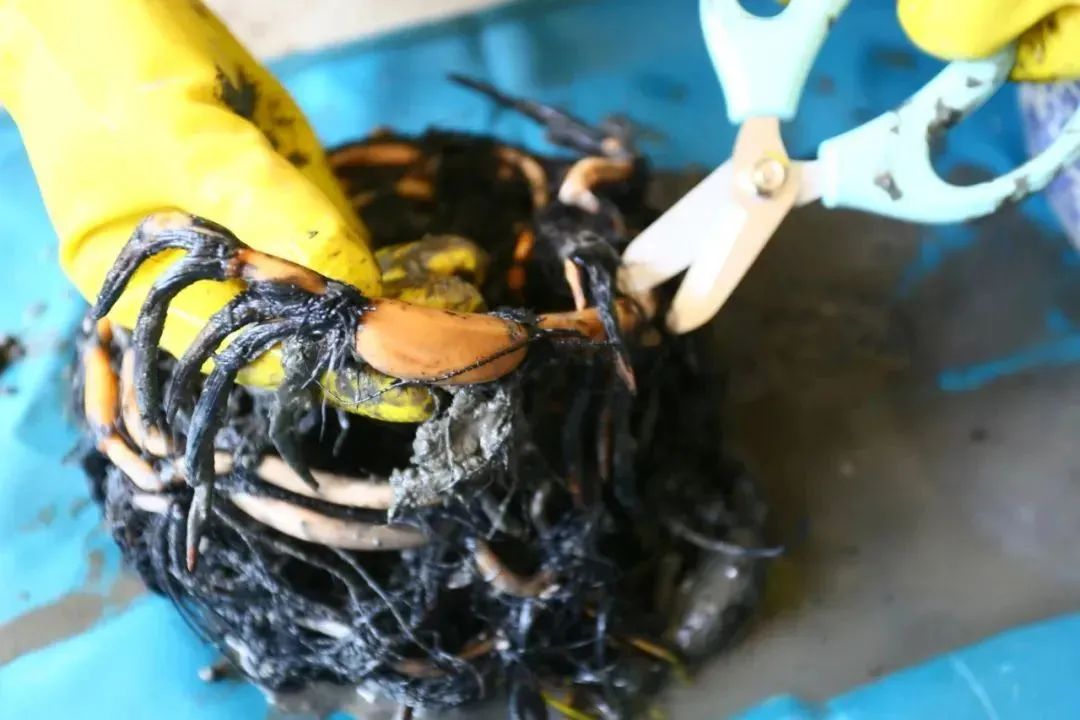 首先将盆倒扣,在不伤及顶芽和藕根的前提下分剪种藕进行分株,在分株的同时观察种藕是否健康。