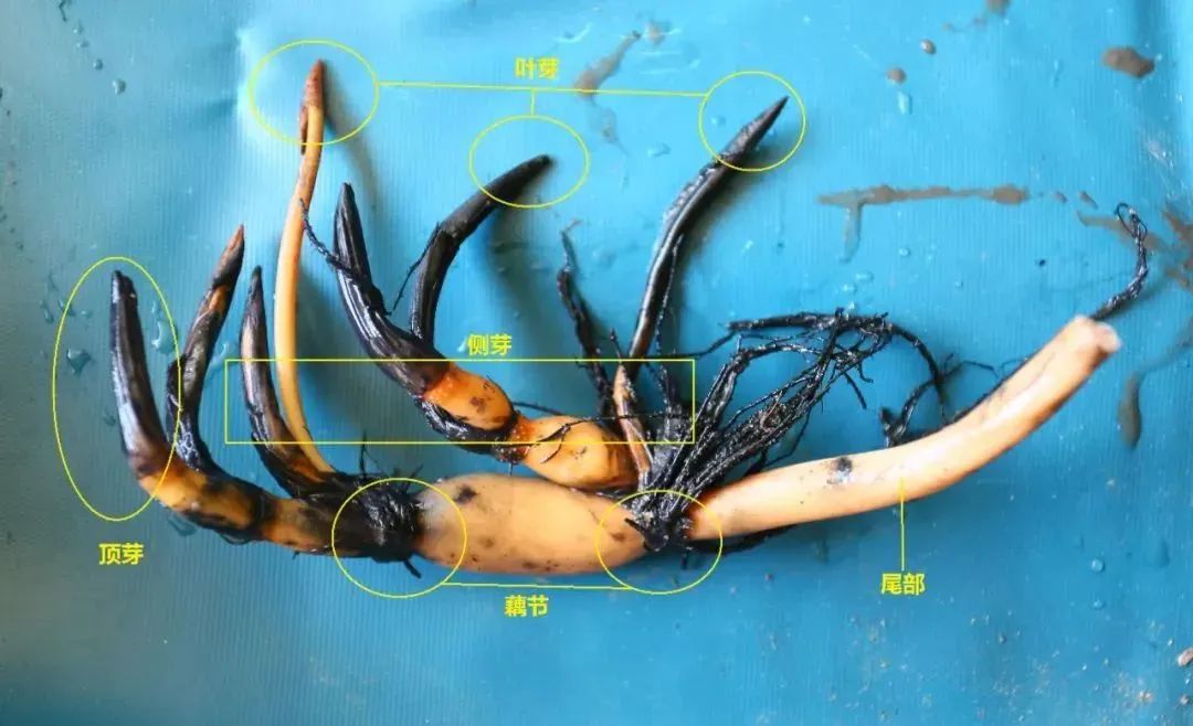 一支合格的种藕包含顶芽、侧芽和藕节,顶芽受损会影响成活率。
