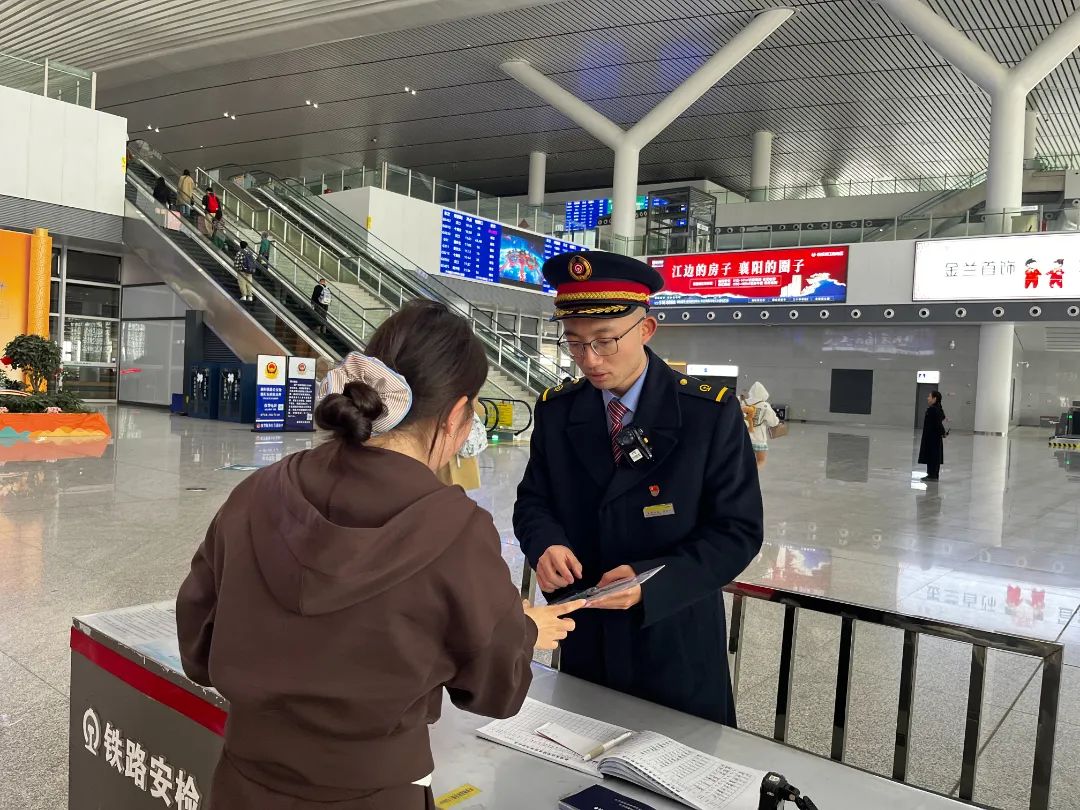 清明小长假期间,襄阳东站迎来扫墓、探亲、旅游等多重客流叠加。根据以往经验和客流分析,付世龙预判上午9点到10点是车站客流高峰,提前安排加开验证通道,并在实名制验证口疏导旅客。作为进站口客运值班员,他还严格把控安检环节,确保每件行李检查到位。“清明期间旅客携带的祭扫物品较多,我们既要加强易燃易爆物品排查,也要做好文明祭扫宣传。”付世龙说。
