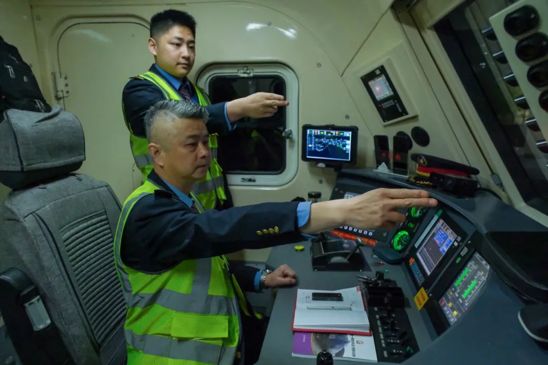 清明小长假期间,江岸机务段加强形势任务宣传教育,督导职工严格落实标准化作业要求,全力为节日期间旅客平安出行、物资运输高效贡献力量。图为4月4日1时,该段信阳运用车间陈东、姚涵博机班正在值乘K1041次列车。(郑琦 杨耀辉)