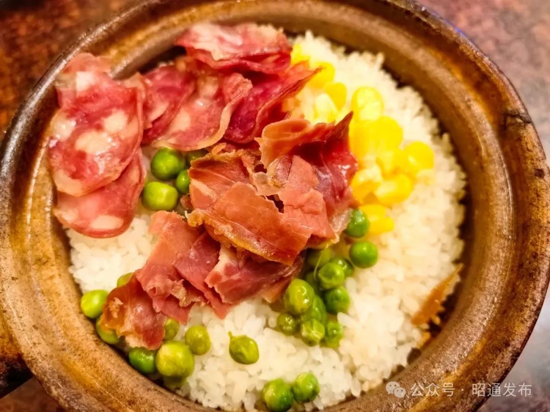很多本地人说,这家昭通锅锅饭算得上是一绝,“每次必点香肠火腿锅锅饭”。玉米、毛豆、火腿、香肠铺满锅面,绿的、黄的、红的,色彩明艳,让人很有食欲。香味扑鼻而来,直击味蕾,每一锅都是老昭通的味道。但也有人说:“不喜欢。”