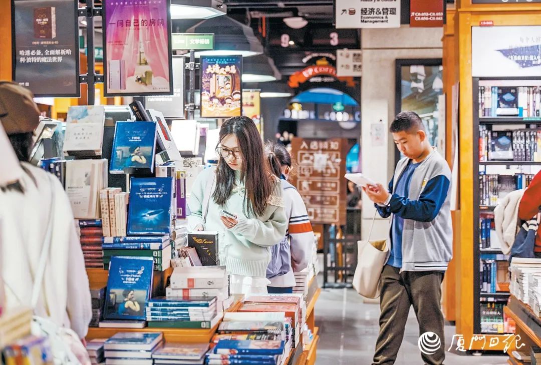 本报记者 林铭鸿 摄昨日,我市雨雾迷蒙,不少市民将活动重心转移到室内。图为市民在西西弗书店阅读、选购书籍。