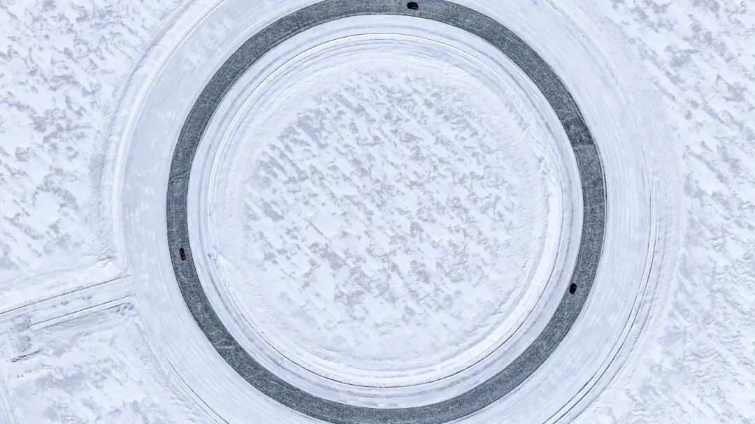 ©试验车正行驶在冰雪圆环道路上进行测试。