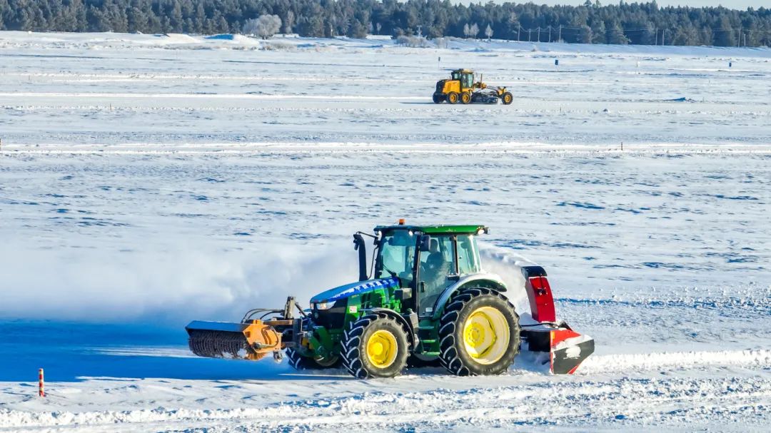 ©平地机和扫雪机正在进行场地修整。