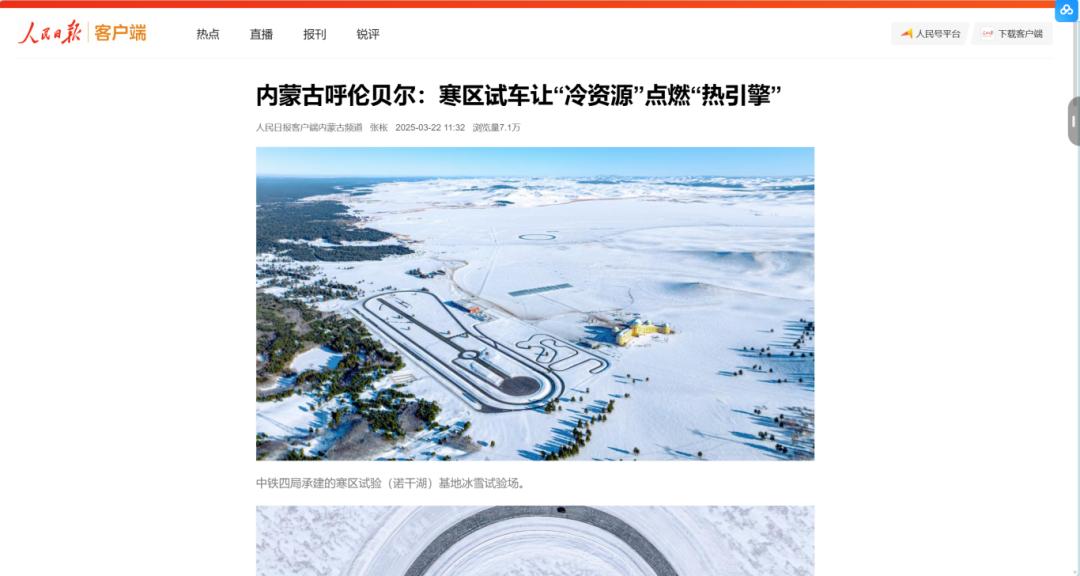 中铁四局一公司承建的寒区试车场受到《人民日报》、新华社、《科技日报》《经济日报》等主流媒体关注与报道。