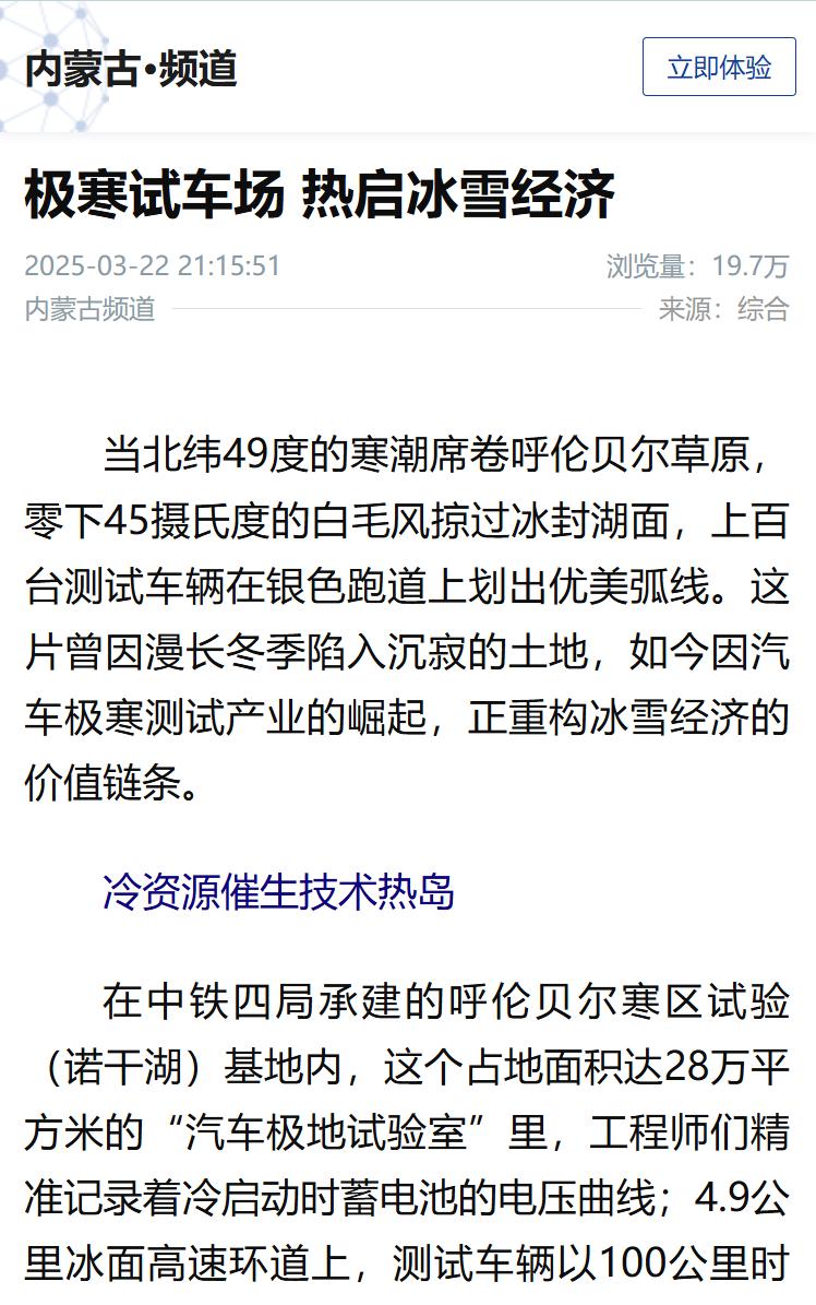 ©《人民日报》客户端:内蒙古呼伦贝尔寒区试车让“冷资源”点燃“热引擎”