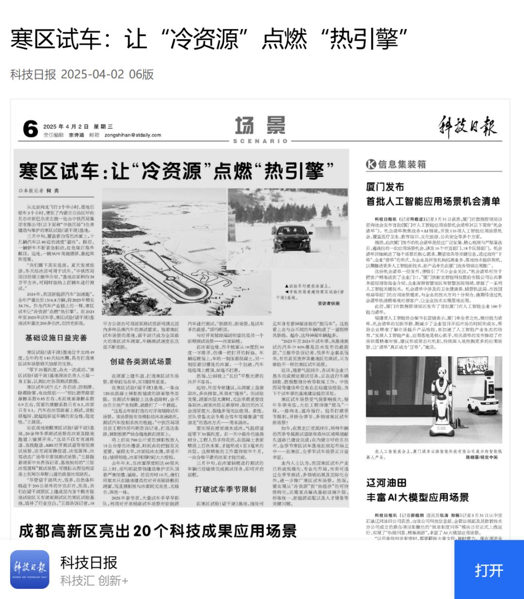 ©《科技日报》:寒区试车 让“冷资源”点燃“热引擎”