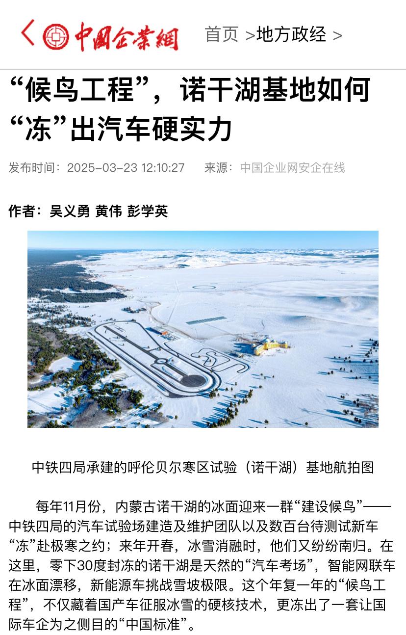 ©中国企业网:“候鸟工程”,诺干湖基地如何“冻”出汽车硬实力