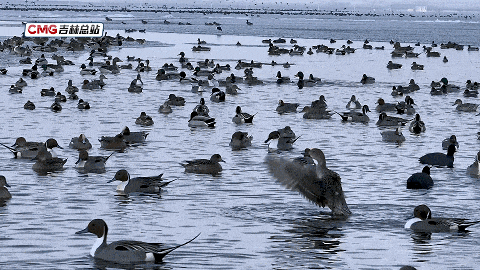 在伊通河畔,一场候鸟的盛会正在上演。绿头鸭成群结队,或在水面觅食、或相互嬉戏,场面蔚为壮观。部分绿头鸭张开翅膀,尽情展示着优美身姿。