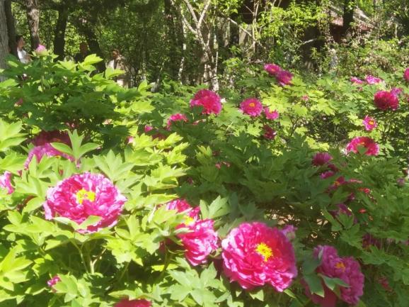 南山牡丹园:全园共有约120个品种牡丹开放,主要分布在九色花、牡丹花海、台地区域等处。其中:盛开的牡丹品种有洛阳红、富贵满堂、卷叶红、景玉、雪塔、白王狮子、如花似玉、银红巧对、肉芙蓉、黄翠羽、蓝月亮、群芳殿、软玉温香等;初开的牡丹品种有大胡红、珊瑚台、鲁荷红 、黑海撒金、墨润绝伦、鲁荷红、贵妃插翠等。园内郁金香、海棠、碧桃、樱花、榆叶梅等竞相绽放。