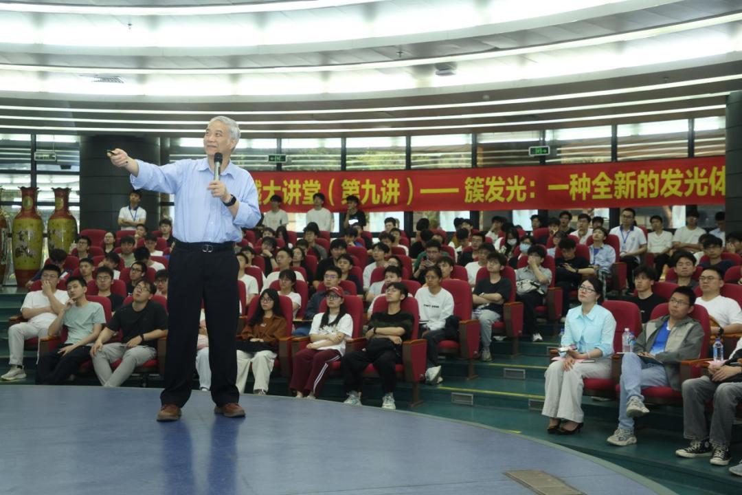 唐本忠院士将分子聚集方式差异的影响这一学术问题,以所有人都熟悉的“水”为例子切入,深入浅出地点出了本场讲座主旨——分子的聚集方式差异具有很高的科研及应用价值。他以分子聚集后受激发呈现“簇发光”的现象为例,详细介绍了不同聚集条件对发光现象的影响。基于此特性,“簇发光”材料在化学、生物医学和材料科学等领域的巨大应用潜力。最后,唐本忠院士对讲座主题进一步升华,引出了中国传统哲学关于“整体”与“部分”的论述对激发科研创新思维的重要价值。他认为,对于还原论的科学范式不能解释的现象,借助中国哲学的整体论,另辟蹊径,可能会开拓出一片新天地。在互动环节,唐本忠院士对师生提出的问题作了耐心解答。