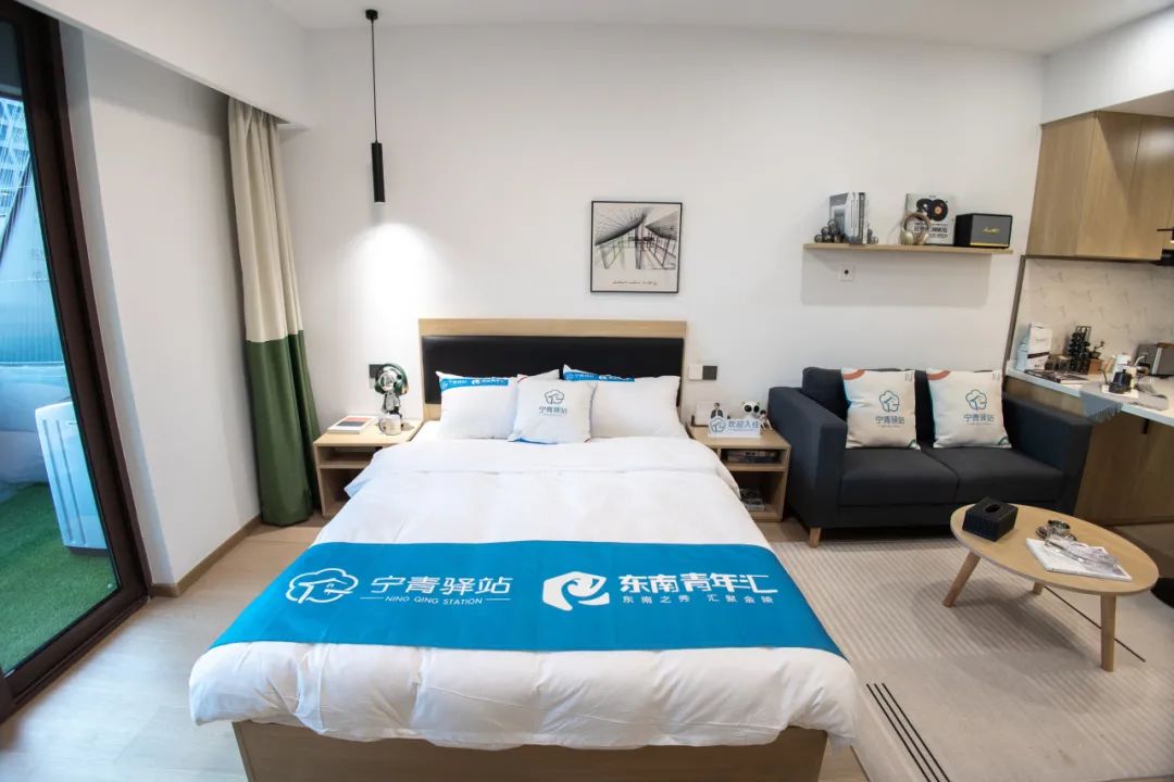 区别于不少青年驿站外包酒店房源的常规运营模式,南京青年驿站运营选用与长租运营企业合作的模式开展,从河西集团、安居集团、东南集团、华贸中心等运营的长租公寓中动态统筹房源,进行长短期入住错配为求职青年提供住宿。并按照“青年在哪里集聚,站点就建在哪里”的原则,优先在交通便利、方便青年求职的区域附近开展站点建设,以此盘活企业闲置房源,将其转化为公益性的青年人才服务资源。