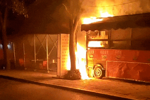 时间回溯到3月下旬的一个晚上,大约7点左右,敖亮下班骑电动车去便利店的途中,突然听到“噼里啪啦”的声响。转身望去,不远处的一家早餐摊已被大火吞噬。由于卫城社区是前线老油区,夜深人静,周边既无行人也无有效灭火设备,情况万分危急。敖亮果断骑上电车冲回厂区,拎起宿舍门口的灭火器,迅速赶赴火灾现场。