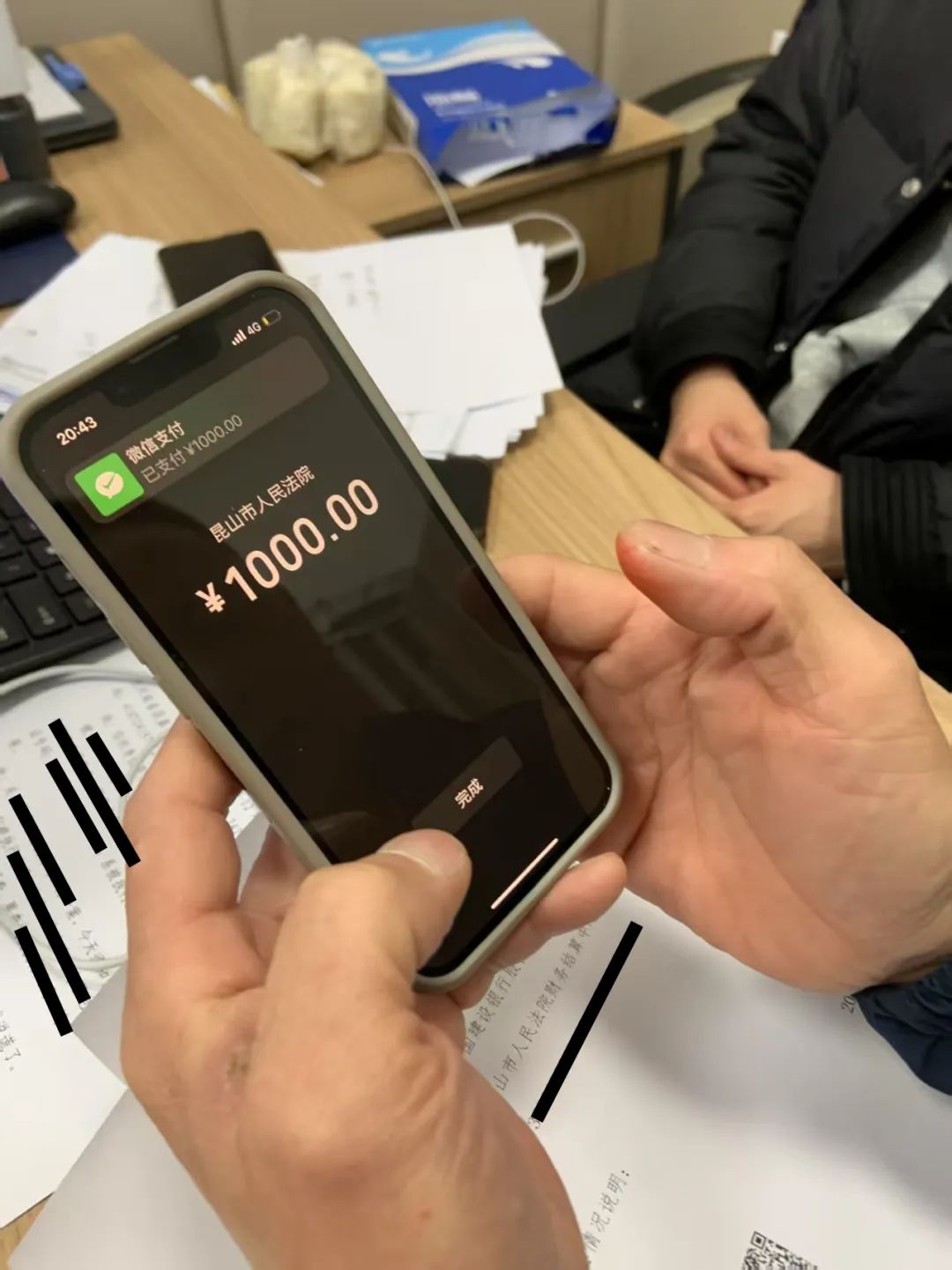 ▲ 张某甲主动至法院履行义务次日,弟弟张某甲得知哥哥为其“背锅”后,主动来到法院并当场履行25000元。法院对其拒不到庭行为罚款1000元,并通知其限期内付清余款。