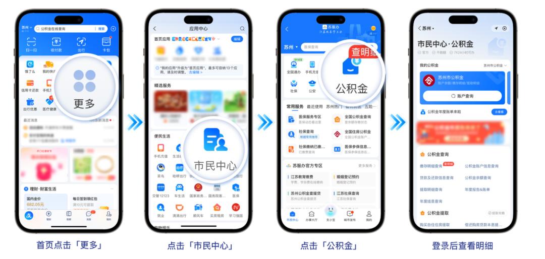 支付宝小程序:首页 > 更多 > 市民中心 > 公积金