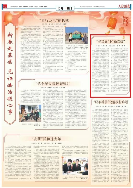 为持续加强民生保障,按照市高法院部署要求,沙坪坝区法院持续开展涉民生执行案件“2025·迅雷行动”。近日,该院执行局法官彭素红成功执行完结4起劳动争议案件,为4名劳动者追回欠薪56万元,让劳动者安“薪”过年。