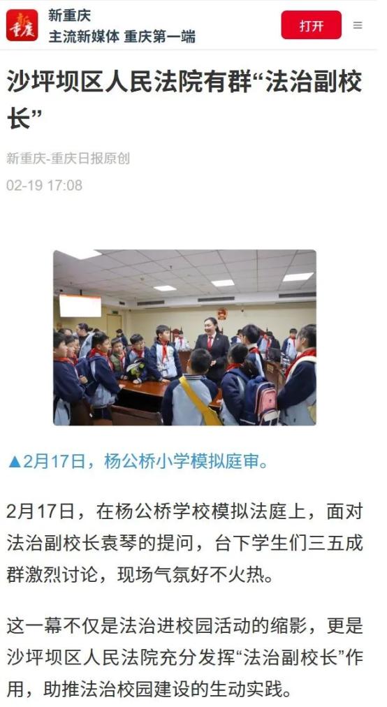 《沙坪坝区人民法院有群“法治副校长”》