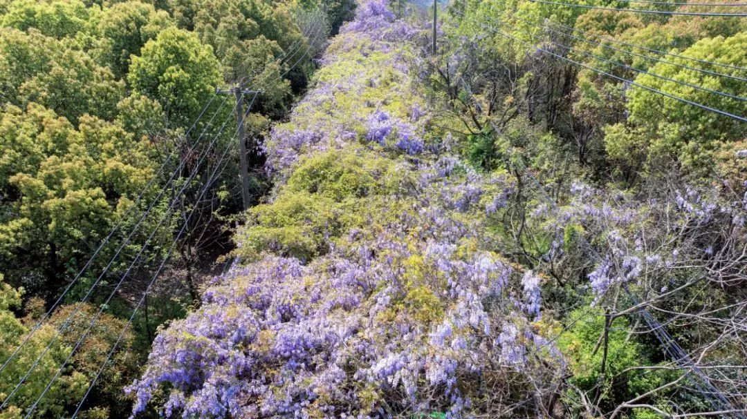 在仁和,有一条南北向、约三百米的长廊,这里有成片的紫藤花在枝头烂漫绽放、垂落成瀑,放眼望去,令人心驰神往!走在廊下,抬头欣赏,脱芽而出的花儿娇艳清新,淡紫色的花瓣,在阳光的照耀下更显梦幻,长长的花穗似铃般摇动,描绘着风的形状、春的颜色。